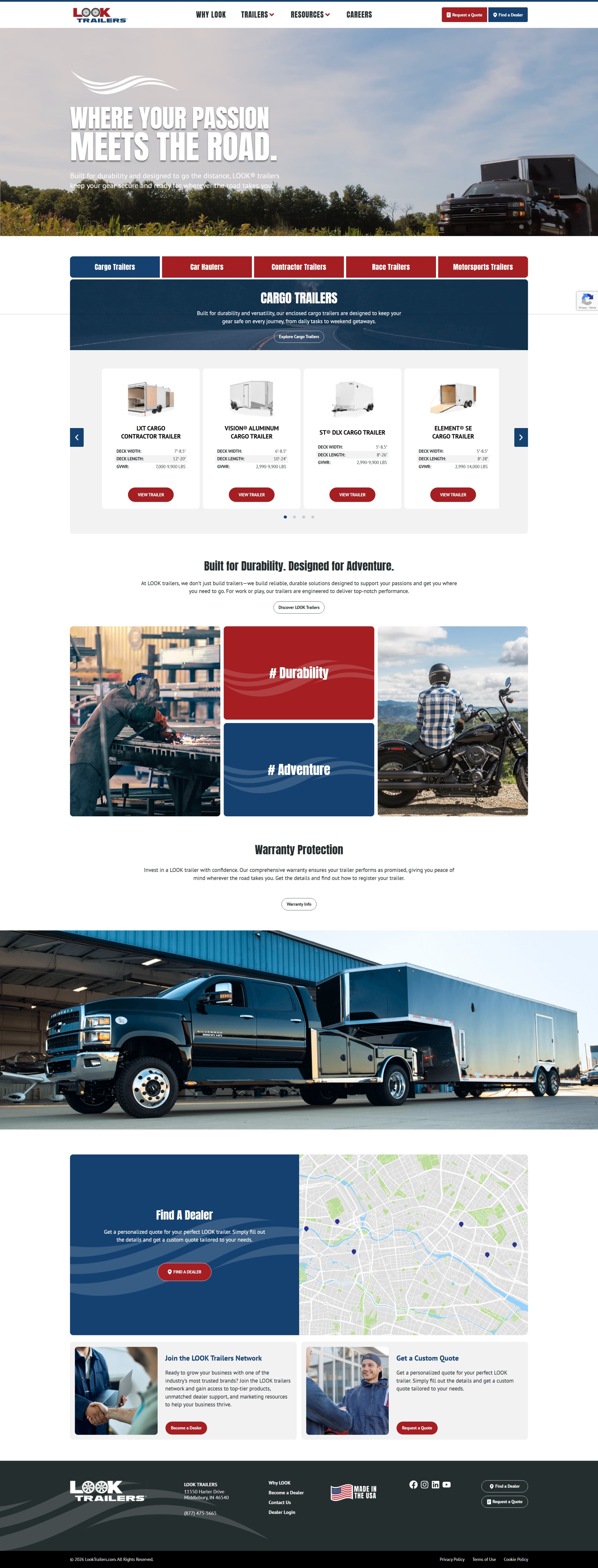 I helped refresh Look Trailers’ digital presence by designing assets and creating content for the website. This made the company more engaging online, helped sales reps close deals more effectively, and reduced the need for costly printed marketing materials.